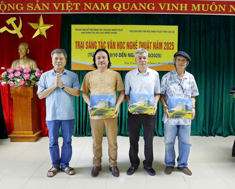 Trong thời gian 10 ngày (từ ngày 10/10 đến hết ngày 19/10/ 2025), Hội Liên hiệp Văn học Nghệ thuật tỉnh Lào Cai phối hợp với Trung tâm Hỗ trợ sáng tác VHNT, Bộ Văn hóa, Thể thao và Du lịch tổ chức thành công Trại sáng tác VHNT tỉnh Lào Cai năm 2025 tại Nhà sáng tác khu vực miền Trung (phường Nha Trang, tỉnh Khánh Hòa).